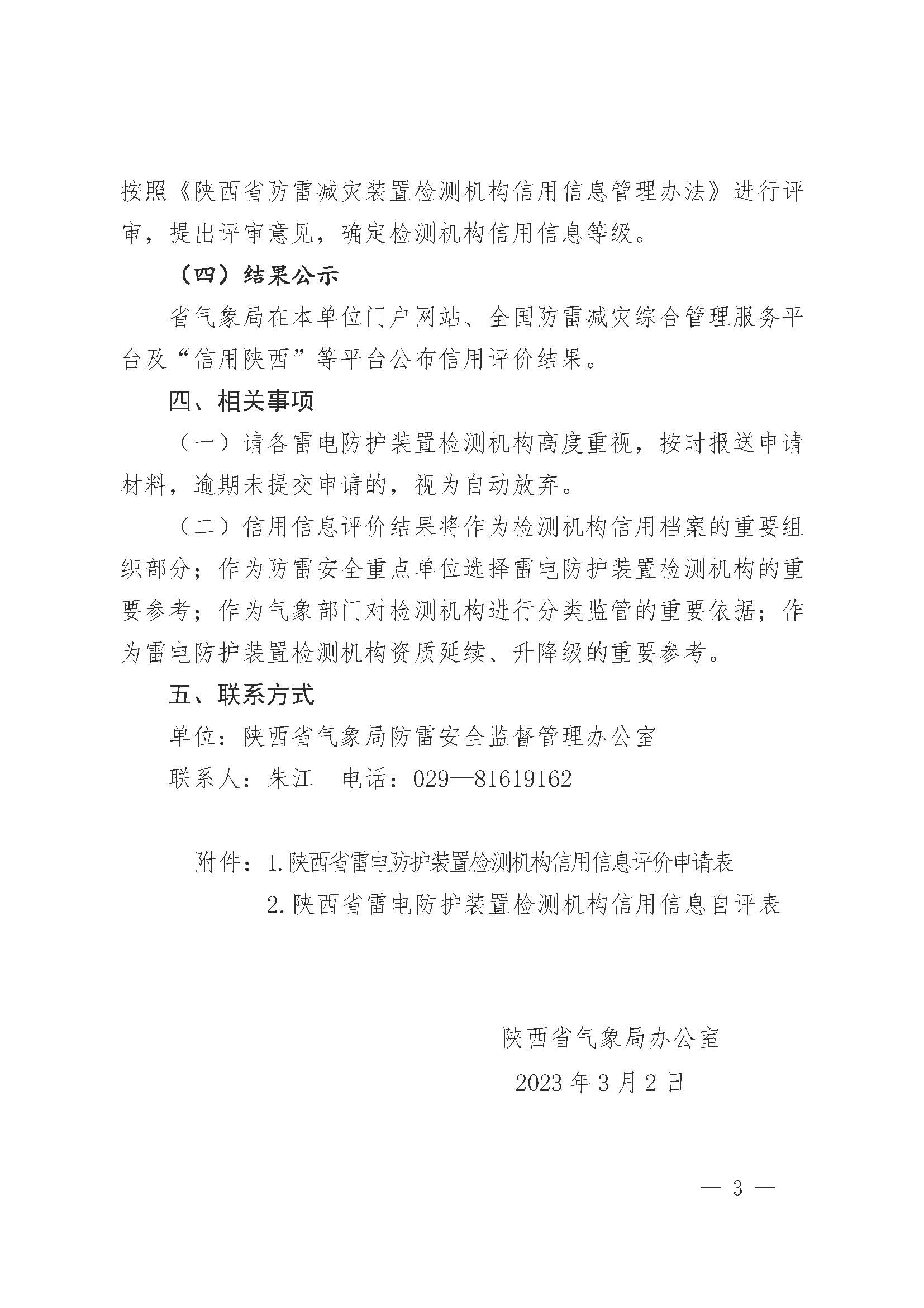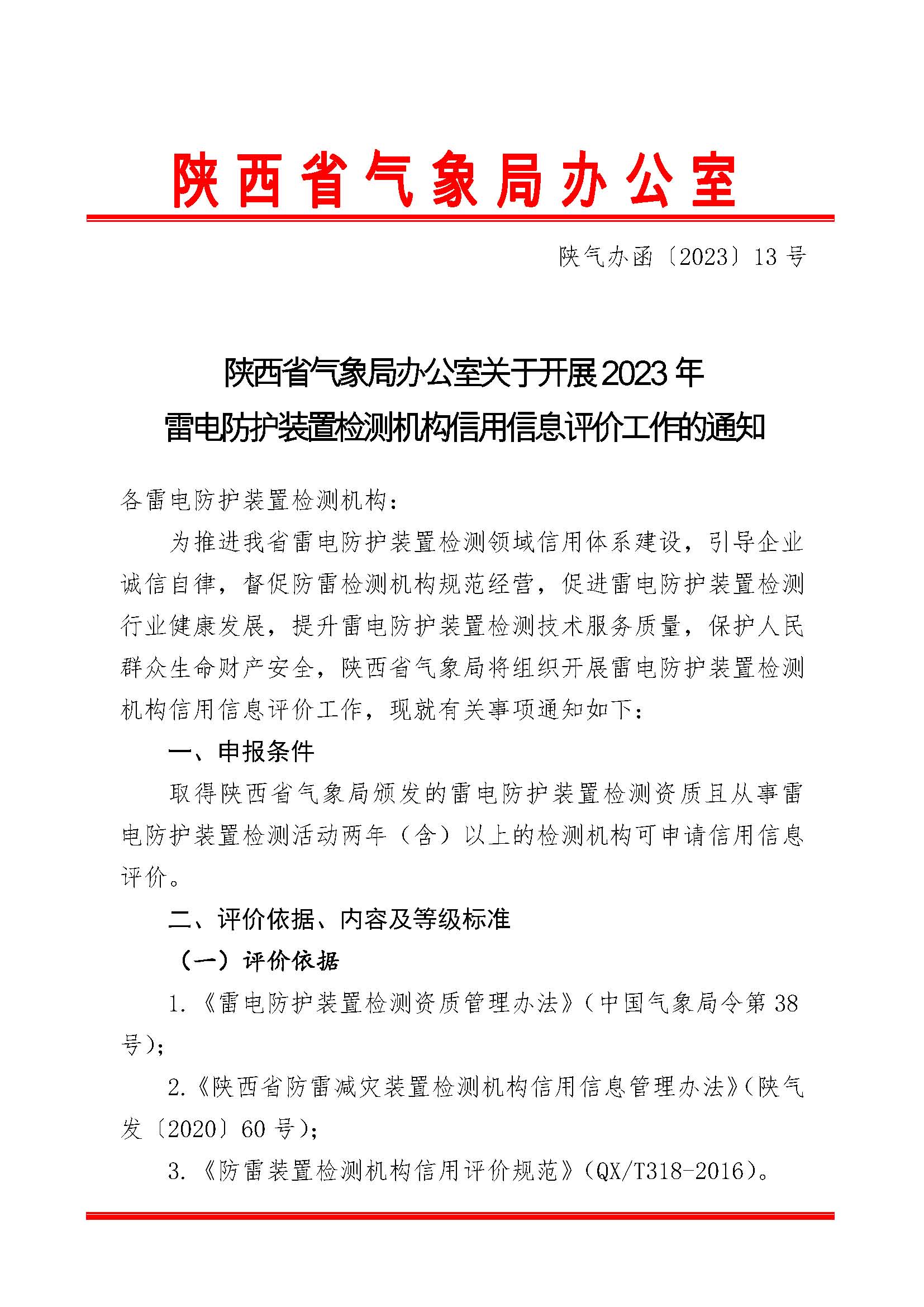 陜西省氣象局辦公室關(guān)于開展2023年雷電防護(hù)裝置檢測機(jī)構(gòu)信用信息評價工作的通知