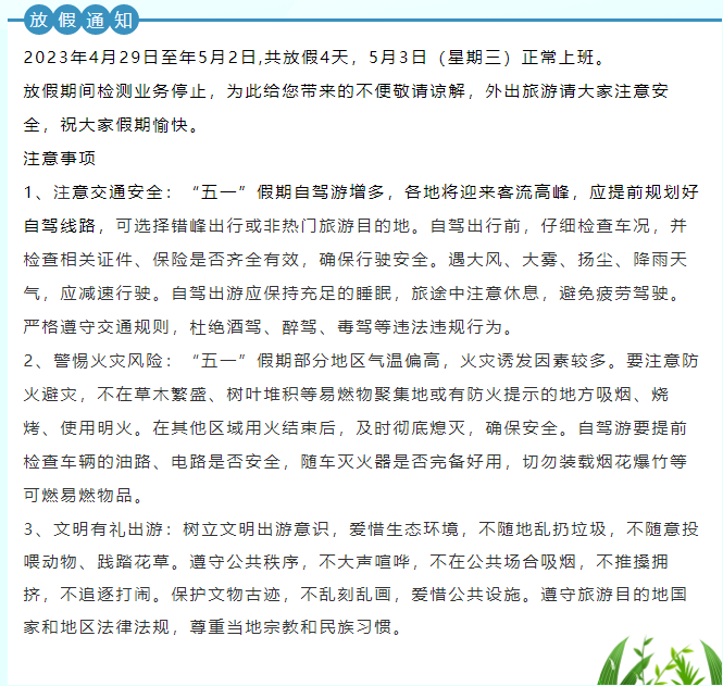 寧雷檢測(cè)五一放假通知